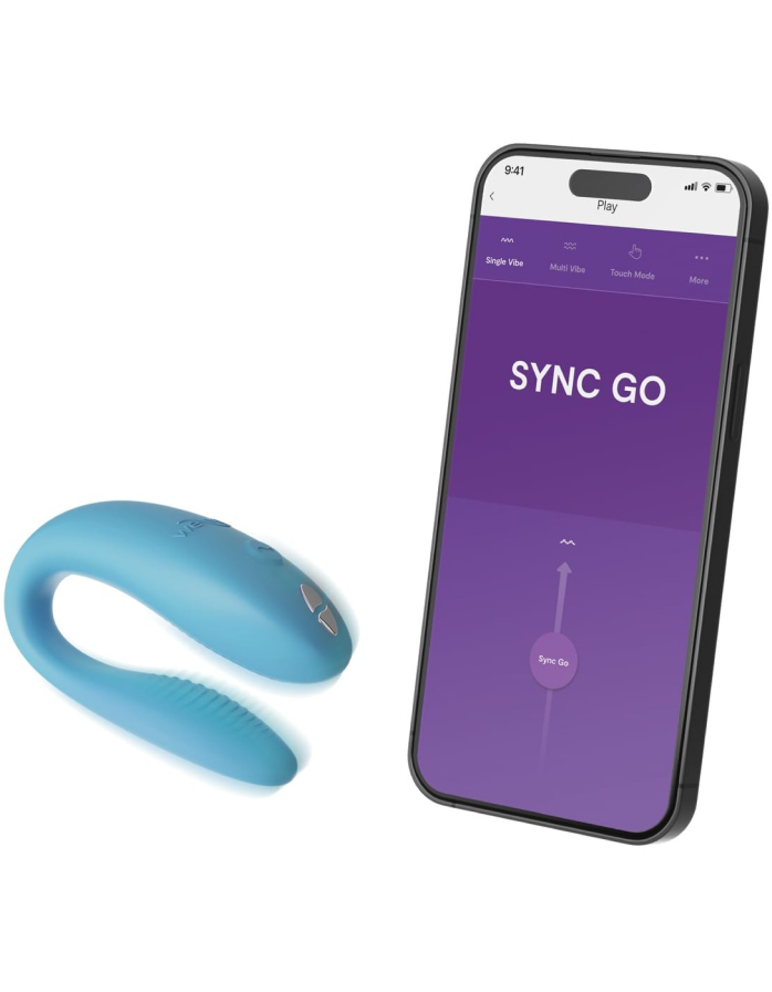 Каков же новый SYNC GO? Это все тот же, разработанный специально для пар, вибромассажер, который принимает непосредственное участие во время близости. У него два кончика с моторчиком в каждом из них: небольшой, с рельефом, погружается в вагинальную зону, ребристой стороной размещаясь в области точки G. Тот, который побольше, - остается снаружи, мягко прилегая к клитору и лаская его своими неповторимыми виброимпульсами. Поскольку SYNC GO, как и другие игрушки коллекции для пар, имеет очень компактные размеры и располагается внутри самым естественным образом, то мужчина может беспрепятственно двигаться, еще больше прижимая массажер к точке G и усиливая ощущения женщины. Мужчина также ощущает вибростимуляцию и получает невероятное удовольствие, так как его интимный орган тоже соприкасается с внутренней частью массажера. Кроме того, We-Vibe остается на месте даже при изменении позиции во время секса.We-Vibe SYNC GO комфортно подстраивается под изгибы Вашего тела, отлично фиксируясь и принося множество приятных ощущений обоим партнерам. Оба кончика вибромассажера сгибаются независимо друг от друга и сохраняют свою форму для еще более удобной стимуляции точки G и клитора с большим или меньшим давлением.
